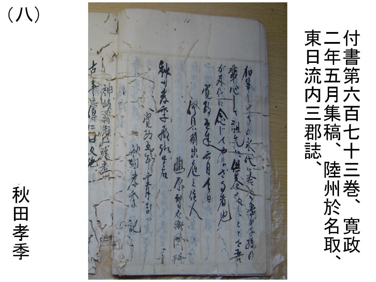 秋田孝季はじめ関係筆写者の筆跡対比史料